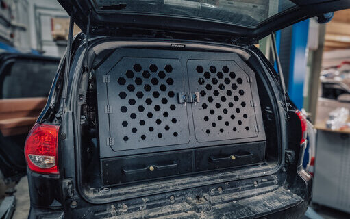 Unsere Heckbox ist fest im Fahrzeug verschraubt und überzeugt durch ihre hohe Stabilität bei gleichzeitig geringem Gewicht. Zu grosser Hund, zu kleines Auto – oder gleich beides? Kein Problem! Wir fertigen jede Heckbox passgenau an, damit sie perfekt zu Ihren Bedürfnissen und denen Ihres Fahrzeugs passt. Gemeinsam finden wir die optimale Lösung, bei der Sie Form und Anordnung der einzelnen Komponenten bestimmen.